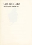 6. DEEL, T. van Geplet. (Met een illustratie van een geplet diertje). Amsterdam, De Lange Afstand, 1991. Vouwblad. Met de hand gezet uit de Glass-antiqua en de Helga (Olga) en gedrukt door Peter Yvon de Vries in een oplage van 550 exemplaren. 1e druk.