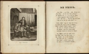 * Met ingeplakte prijs: ‘Bewijs van goedkeuring wegens vlijt en goed gedrag. Eerste prijs (…) toegewezen aan [ingevuld]: Hendrika Monsees’, Amsterdam, 24 October 1859, met handtekening van de secretaris, J. Backer Jr. Ontroerend boekje, een lief presentje vol deugdzaam vermaak, een toonbeeld van 19e-eeuwse geschiedenis: Hendrika Monsees zou in 1872 op 23-jarige leeftijd overlijden als eerste echtgenote van Engelbert Elderenbosch. Jhr. J. Backer jr. (1820-1905), bewoner van de buitenplaats VreedenHoff aan de Vecht, zette zich zijn leven lang in voor de armenscholen van Amsterdam.