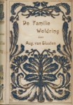 39. (SLUIJTERS, Jan; Cornelia van der HART). SLOOTEN, Augusta van De familie Weldring. Geïllustreerd door Jan Sluyters. Amsterdam, H.J.W. Becht, [1906]. Versierd wit linnen met opdruk in goud en blauw (ontwerp Cornelia van der Hart). (VIII), 352 p. 1e druk. Scheefgelezen. Lichte slijtplekjes en vlekjes. Naam op schutblad (‘Jo Poelman’).