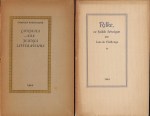 b. (RILKE). VILALLONGA, Luis de Rilke, ce faible héroïque. (Met een frontispice door E.A. Hof). [Den Haag], ‘Claude Sézille à Paris pour le compte de l’éditeur Pierre Mangart à Rosières, Picardie’ [= A.A.M. Stols], 1944. Ingenaaid. (2), 22 p. Gezet uit de Erasmus en gedrukt in blauw en zwart in een oplage van 150 genummerde exemplaren. 1e druk. Afgevoerd uit de collectie van het Letterkundig Museum. * H.C.-exemplaar. Vermoedelijk geschreven door Stols zelf onder dit grootse pseudoniem: Luis de Vilallonga was een (in 1944) jeugdige Spaanse markies, die later een eulogie van koning Juan Carlos zou schrijven en met Audrey Hepburn in een film zou schitteren. Geparafeerd door Stols als ‘P.M.’ Van Dijk 652. De Jong 869.