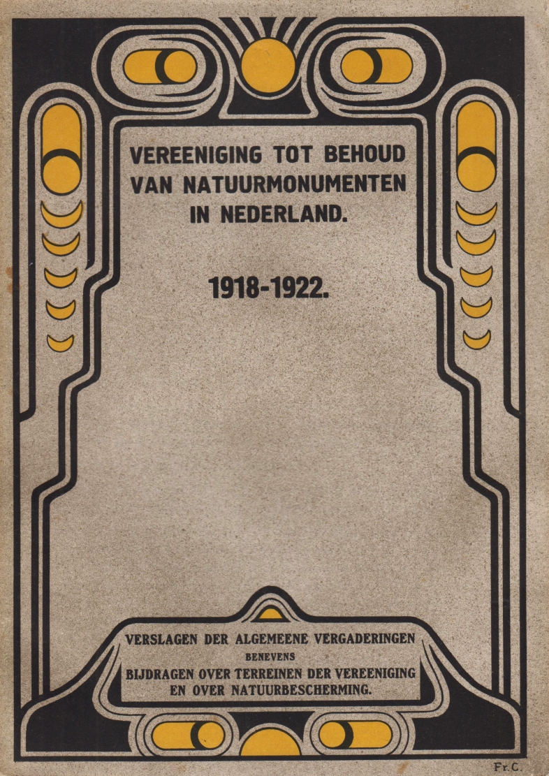 8. (COHEN, Fré) Jaarboekje der Vereeniging tot Behoud van Natuurmonumenten in Nederland. Amsterdam, Vereeniging tot Behoud van Natuurmonumenten in Nederland, (1923). Origineel omslag (gesigneerd Fr.C.). 124 p. Geïllustreerd. Met inliggende drukwerken (uitnodigingen en aanmeldingskaarten). 1e druk. Rug iets versleten, verder netjes.