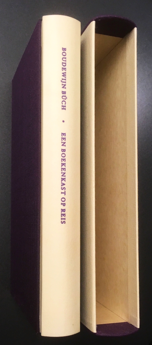 2. BÜCH, Boudewijn Een boekenkast op reis. Persoonlijke kroniek 1998. Amsterdam/ Antwerpen, De Arbeiderspers, (1999). Halfperkament met platten van fijne, zacht glanzende stof; in cassette (Binderij Phoenix). 290 p. 1e druk.