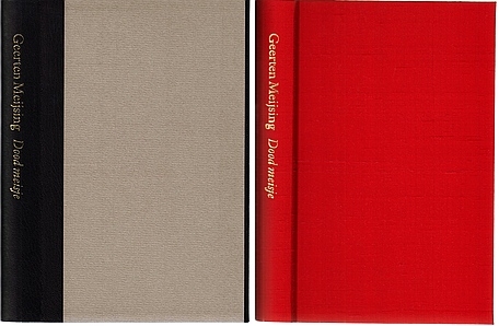 20. MEIJSING, Geerten Dood meisje. Amsterdam/ Antwerpen, De Arbeiderspers, (2000). Vergulde, rode zijden band in verguld zwart halfmarokijnen overslagmapje met marokijnen voorrand, beide met rugtitel, samen in lederbekleed foedraal (Frans den Breejen). 296 p. 1e druk.