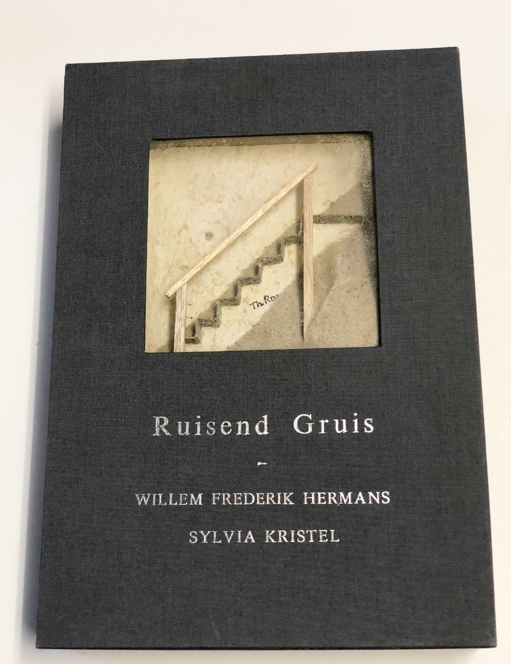 * Leuke bibliofiele uitgave, gevat in een zeer inventieve cassette, waarin een driedimensionaal tafereeltje is verwerkt: een trapje in beweeglijk zand achter een perspex kijkglas (ontwerp Freddy de Vree, uitvoering binderij Jansen, Edegem).
