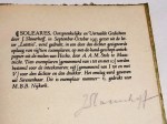 * Dit is nummer 6 van de oplage, op naam gedrukt voor de bekende bibliofiel M.B.B. Nijkerk, door Slauerhoff in potlood gesigneerd. De onvindbare eerste druk, éen van de fraaiste en meest kwetsbare Stols-uitgaven. ‘Het teere van de band is noch met de inhoud noch met de aard van de auteur in overeenstemming. Maar ’t is nu ook vooral voor de liefhebbers’, schreef Slauerhoff aan zijn uitgever. De nieuwprijs van de eerste druk van Soleares bedroeg 25 gulden, een vermogen in die tijd. Van Dijk 313.