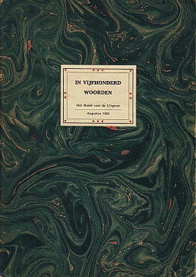 * Fraai klein uitgaafje gedrukt door de auteur zelf op de Slofpers. ‘Emile Puettmann zei wat kan en wat niet kon’. Leuk! Bij de tweede druk ontbreekt het motto van Greshoff op de binnenzijde van de titel, en zijn de laatste twee regels van het laatste gedicht weggevallen; deze werden in dit exemplaar in paarse vulpeninkt toegevoegd. Ook het colofon is in paars verbeterd.