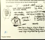 27. HOLMAN, Theodor 2 november 2004/ Voor Theo van Gogh. [Amsterdam], XXuitgevers, 2004. A4. Eén blad, alleen recto. Facsimile van een gedrukt gedicht dat geïllustreerd is met aangrijpende kleine tekeningetjes, woordjes en invallen – alles doorgestreept. Met stempeltje in blauw van Holman en signatuur van de uitgever, Guus Bauer.