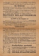 10. BOMANS Manifest van de R.K. Staatspartij Provinciale Statenverkiezing Noord-Holland 22 April 1931. [Zonder plaats], R.K. Staatspartij, 1931. 28 x 20 cm. Strooibiljet, tweezijdig gedrukt op krantenpapier. Gevouwen en op de vouw wat ingescheurd.