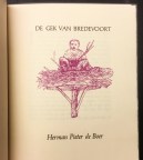 8. BOER, Herman Pieter de De gek van Bredevoort. (Wassenaar), De Pij Pers, 1995. Ing. (4), 16 p. Gedrukt in een oplage van 192 genummerde en gesigneerde exemplaren. Met een tekening van Pat ANDREA. 1e druk.