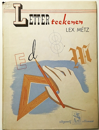 19. METZ, Lex Letterteekenen. Alkmaar, Uitgeverij Arti, [1944]. 32 x 24 cm. Halflinnen met stofomslag. 56 p. Gedrukt in rood en zwart. Met vele, vele voorbeelden. 1e druk. Oorlogspapier wat roestig, verder een heel aantrekkelijk exemplaar.