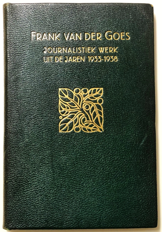 11. GOES, Frank van der Journalistiek werk uit de jaren 1933-1938. Amsterdam, Wereldbibliotheek, 1940. Rijkverguld groen heelleer. 104 p. Met portret. Gedrukt op stevig, getint papier. 1e druk.