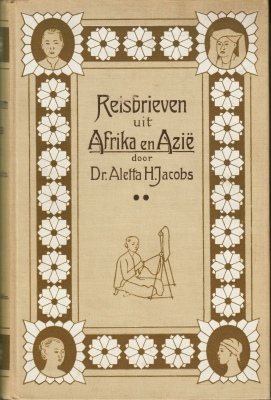 12. JACOBS, Aletta Reisbrieven uit Afrika en Azië. Benevens eenige brieven uit Zweden en Noorwegen. Almelo, W. Hilarius, 1913. Twee delen. Versierd linnen. (8), 400; (8), (316, doorgenummerd) p. Met foto’s op kunstdrukpapier. 1e druk. Banden op de rug verkleurd en iets gevlekt. Tekstpapier roestig.