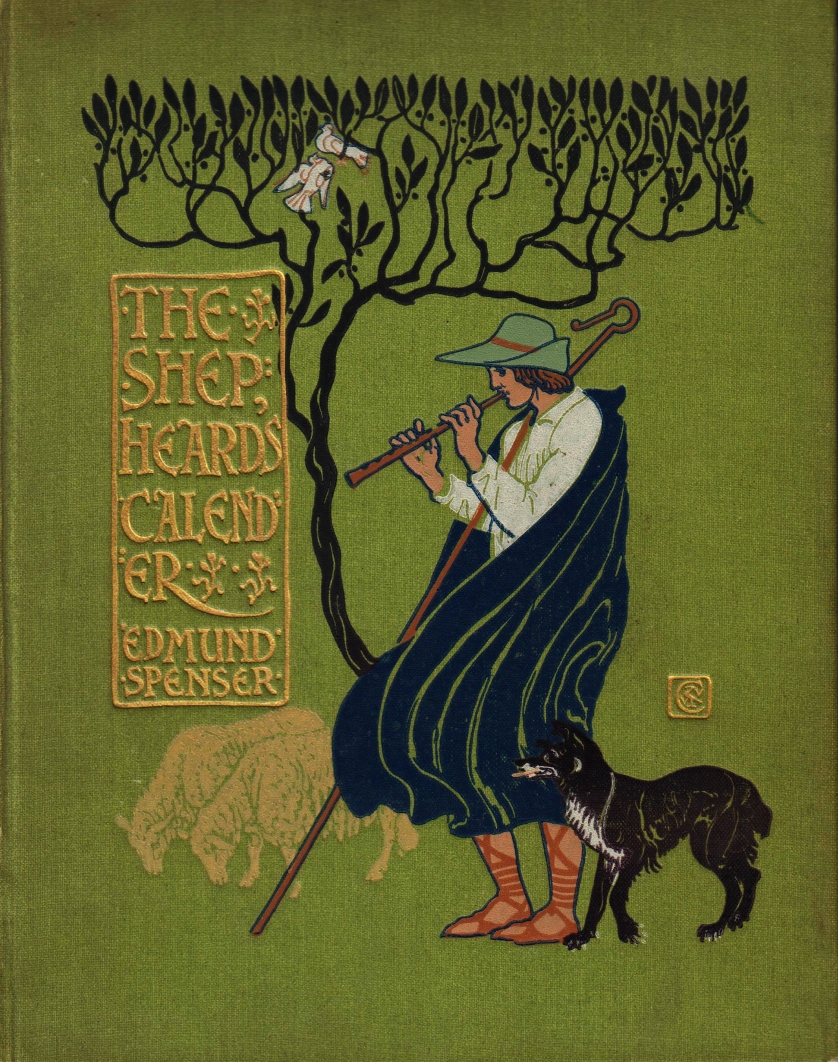 * Sublieme art-nouveau-illustraties in 8 (!) kleuren verguld-gestempeld op beide kanten (én de rug) van de groen linnen boekband. Schutbladen gedecoreerd met groene grasjes, een fluitende sater en een schilderende nimf. Pastorale dubbelpaginatitel en twaalf illustraties die de maanden verluchten. Alle pagina’s met brede jugendstil-kaders. De tekst is een cyclus van twaalf gedichten van Edmund Spenser, met bijbehorende welsprekende inleiding, voor het eerst gepubliceerd in 1579. Een snoepje van een boek, erg geschikt als cadeau voor Sint en Kerst.