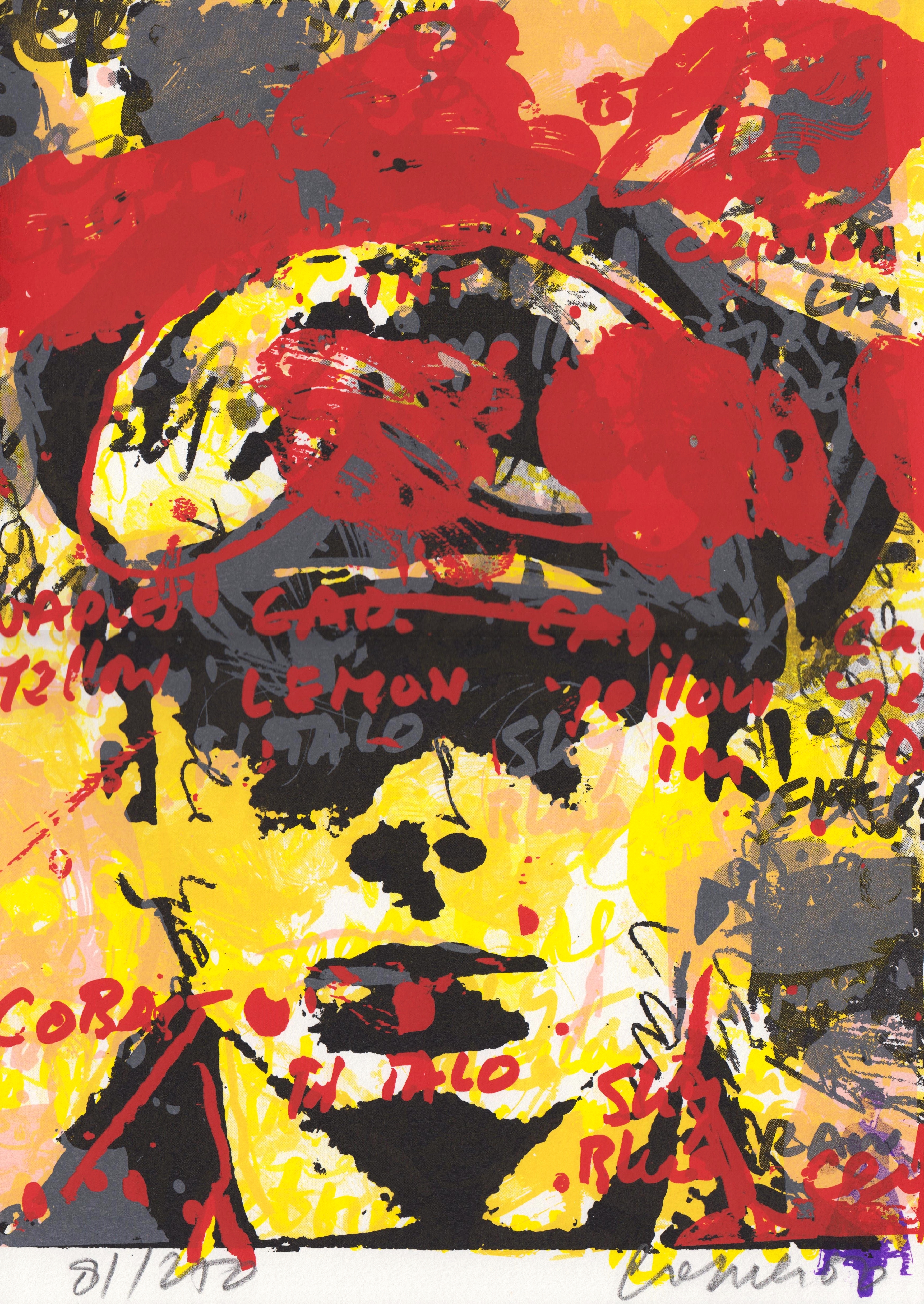 12. CREMER, Jan Ik Jan Cremer. (Speciale Jubileumeditie). Amsterdam, De Bezige Bij, 2000. Jubileumeditie: boek, cd en originele, gesigneerde zeefdruk in kleuren in grote linnen overslagdoos. 44,5 x 32,1 x 6,1 cm. Uitgegeven in een oplage van 250 exemplaren.