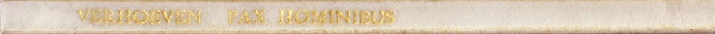 24. VERHOEVEN, Bernard Pax hominibus. Gedichten. [Utrecht], De Bezige Bij, [1944]. Verguld perkament (voorzijde omslag meegebonden). Kop verguld. 40 p. Gezet uit de Garamont en gedrukt in een oplage van 525 genummerde exemplaren. 1e druk.