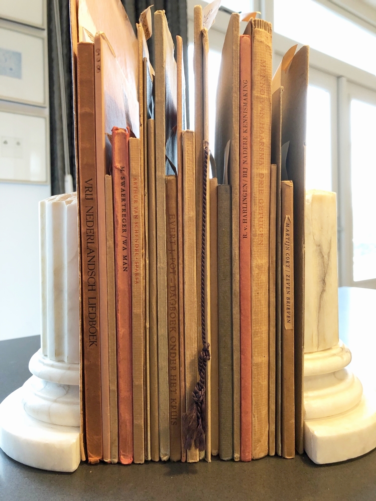* De meeste van deze uitgaven zijn lezenswaardige boeken, recht uit de oorlog en recht uit het hart, mooi uitgegeven en gedrukt op goed papier, dat in het verborgene betrokken werd van de papierhandel Van Gelder. Ze dateren uit 1944 en 1945.