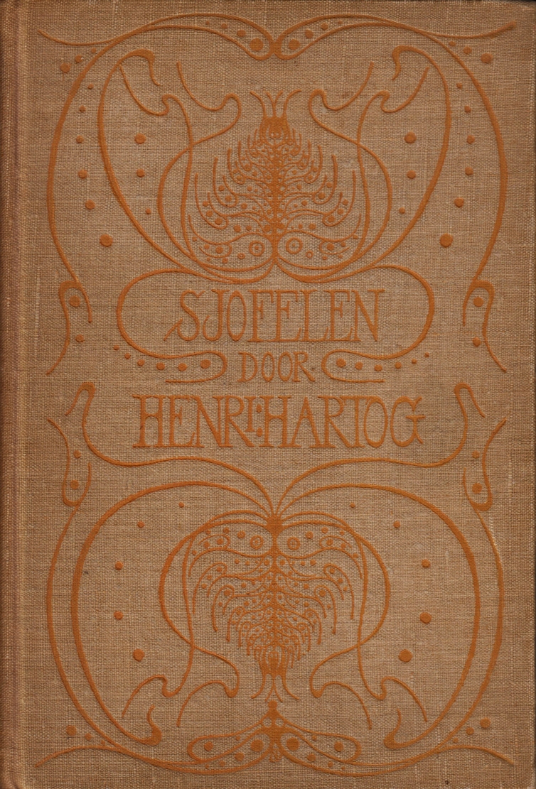 20. HARTOG, Henri Sjofelen. (Met een voorrede door Lodewijk van Deyssel). Rotterdam, Brusse, 1904. Ruig linnen met bandversiering van Dirk Nijland. (VIII), 280 p. 1e druk. Met portret. Rug wat verkleurd.