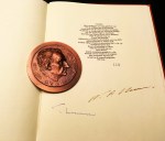 Bijgevoegd: (HERMANS, W.F.). O.V. de L. MILOSZ Bronzen legpenning van O.V. de Lubicz-Milosz. Diameter 8,6 cm. Gewicht 215 gram. Vervaardigd door Magdeleine Mocquot, in de rand gedateerd 1966 en genummerd ‘no. 5/100’.
