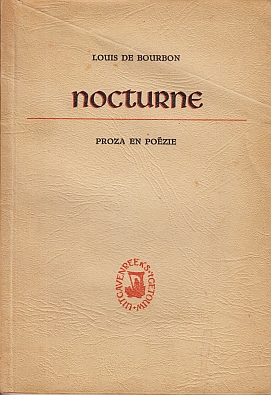 6. BOURBON, Louis de Nocturne. Proza en poëzie uit den tijd der onvrijheid en herleving. (Met opdracht van de schrijver). Helmond, Boekdrukkerij Helmond, 1947. Ingenaaid. 68 p. Gedrukt in rood en zwart. 2e druk. Vouw voorin.