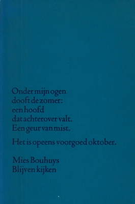 4. BOUHUYS, Mies Blijven kijken. (Een van 15 genummerde exemplaren). (Amsterdam, Meulenhoff, 1971. Ingenaaid. 40 p. 1e druk. Keurig.