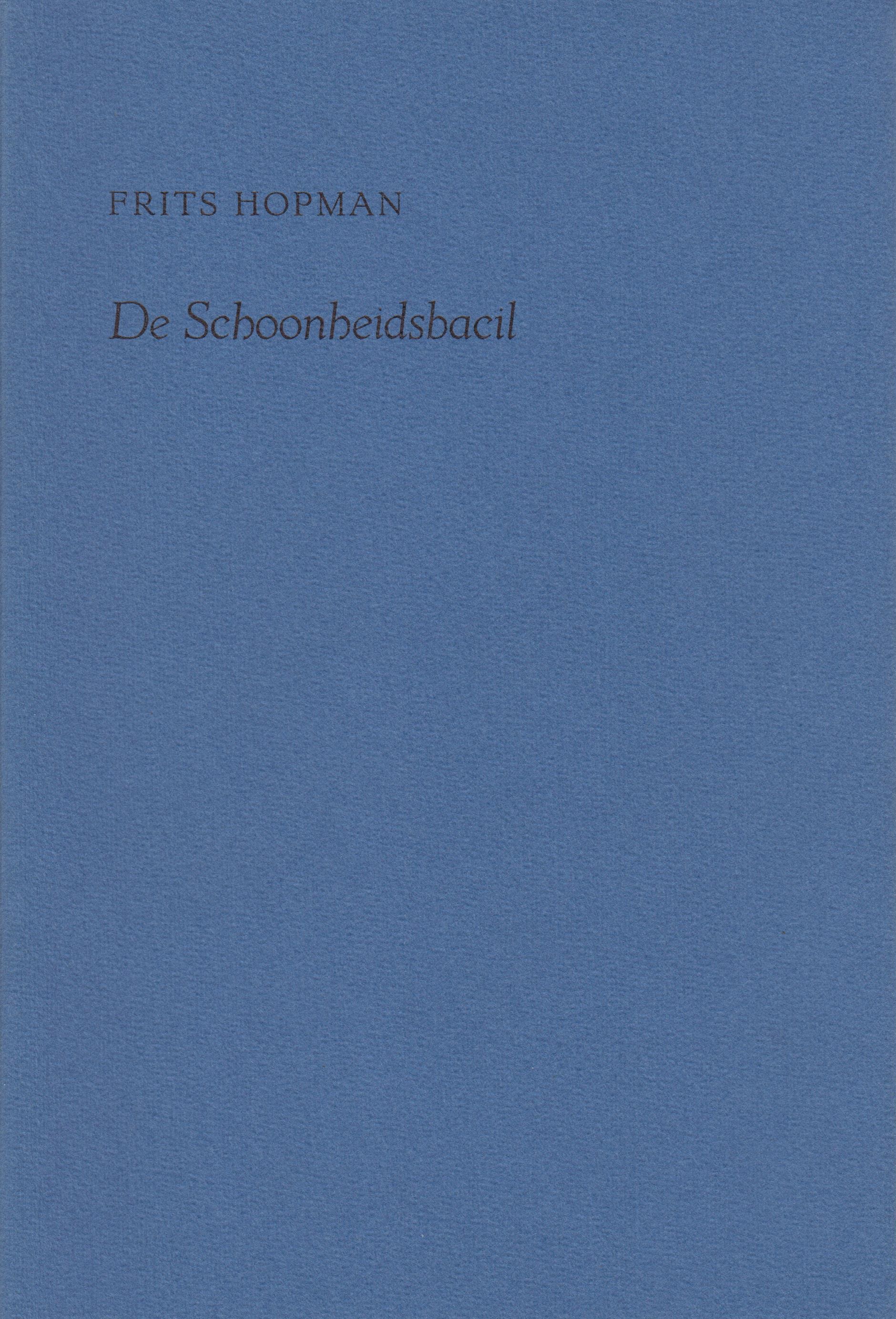 4. HOPMAN, Frits De schoonheidsbacil. Den Haag, Mikado Pers, 1983. Linnen. (4), 36 p. Met de hand gezet uit de Erasmus en gedrukt in rood en zwart op Simili Japon in een oplage van 79 genummerde exemplaren. 1e druk.