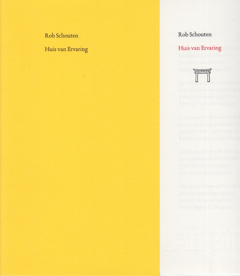 12. SCHOUTEN, Rob Huis van Ervaring. Den Haag, Mikado Pers, (1988). Vouwblad in omslag. Met de hand gezet uit de Romanée en gedrukt in rood en zwart op Zerkall-Bütten in een oplage van 90 exemplaren. 1e druk.
