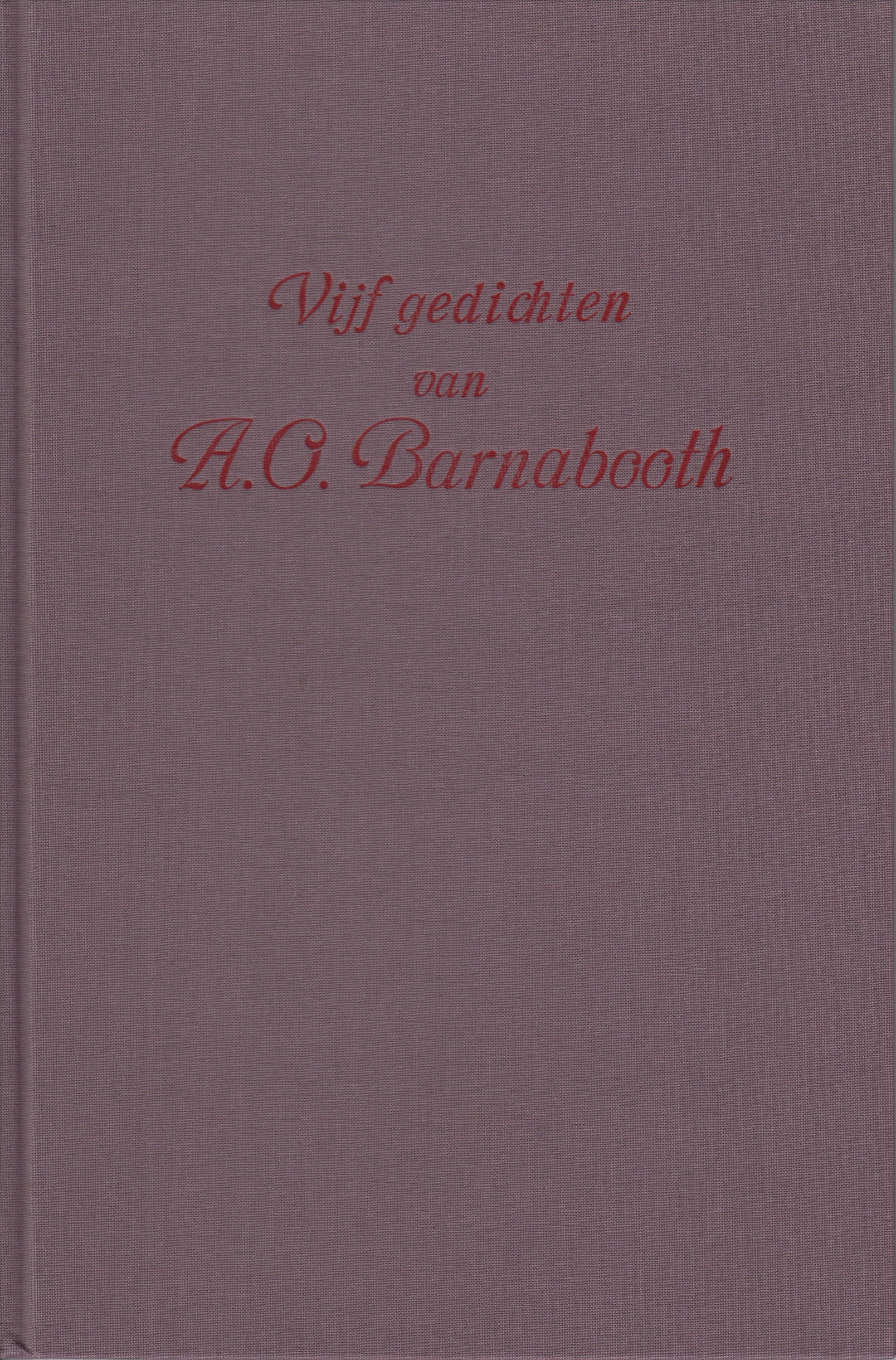 2. (ARETHUSA PERS). LARBAUD, Valery Vijf gedichten van A.O. Barnabooth. Vertaald door Paul de Bruin. (Met een gesigneerde kleurenets door David Bekker). Baarn, Arethusa Pers,1995. Linnen (Geert van Daal). 20 p. Gedrukt door De Distelkamp in een oplage van 75 genummerde exemplaren.