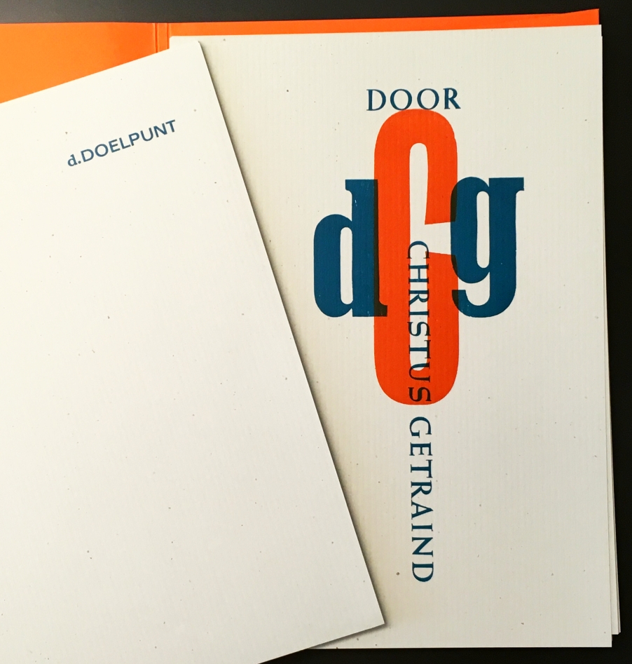10. D.DOELPUNT. Namen van Nederlandse voetbalverenigingen. (Amsterdam, Atelier GrotesQue, 2001). 34,7 x 25 cm. 19 eenzijdige bedrukte bladen in overslagmap (Sándor jr. Schouten). Met de hand gezet uit de Atlas vet, Arsis, Baskerville, Bodoni, Folio Grotesk, Garamont, Iris, Weiss antiqua & houten letters en gedrukt in rood en blauw in een oplage van 80 genummerde en gesigneerde exemplaren.
