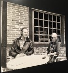 8. ARMANDO Twee originele zwart-witfoto’s. 30 x 40,2 cm. Jaren 70. Forse afdrukken. Op de ene foto heeft Armando (met flinke bakkebaarden) een boek of mapje in de hand en kijkt (niet zonder trots) lachend in de camera, op de andere foto zit hij aan een tafeltje in gesprek met Nol Gregoor. Beide foto’s zijn voor dezelfde achtergrond genomen: een muur en een raam.