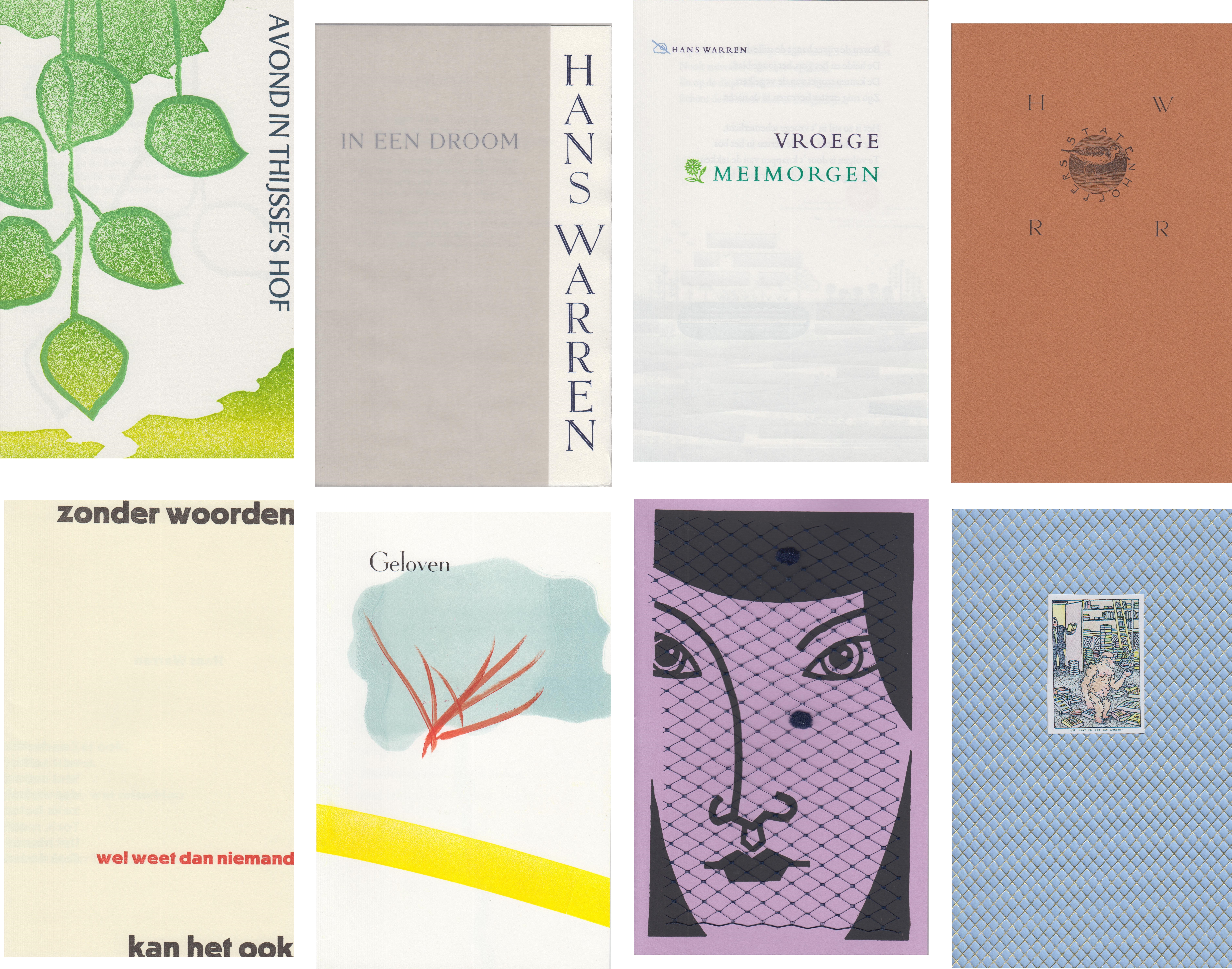 * Fraaie vriendendoos met merendeels ongepubliceerde gedichten van Hans Warren, gedrukt door margedrukkers en -uitgevers als Althaea Pers, Atalanta Pers, Avalon Pers, Eikeldoorpers, Enkidu-Pers, Het Gonst, Lojen Deur Pers, Ser Prop, Statenhofpers, De Uitvreter en De Vier Seizoenen, hier en daar verlucht met een zeefdruk of een linosnede.