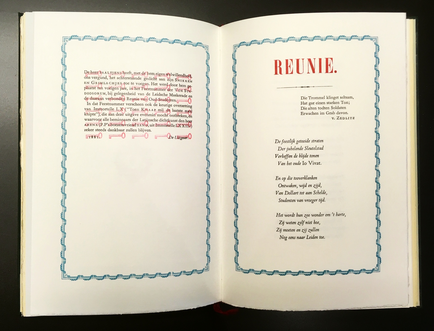 * In deze nieuwsbrief is dit het enige drukkersproject in boekvorm! Eerbetoon aan François HaverSchmidt alias Piet Paaltjens. Alle aangezochte drukkers komen uit de buurt van Leiden: Pro cunno felis, Storm & Van Delft, De Invaller, De Plataan, Appel Pers, Lupus, Steur & Witteveld, Pers No. 14, Stichting Boekdrukkunst, Bloemenpers, De Uitvreter, De Ammoniet, Clipeus Pers, Avalon Pers en Presse d’Escargot. Mooi project met gedichten van Paaltjens, voorzien van veel (typografische) illustraties, waaronder een originele aquarel van Katelin Steur-Bacskó.