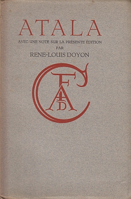6. CHATEAUBRIAND, F.A. de Atala. Avec une note sur la présente édition par René-Louis Doyon. Paris, La Connaissance, 1931. Ingenaaid. XVI, 76 p. Gedrukt in rood en zwart naar typografisch ontwerp van Charles Nypels op Pannekoek-papier in 525 genummerde exemplaren. Met het bijbehorende briefje waarin Nypels verklaart dat hij zijn medewerking niet had kunnen verlenen bij het drukken. Rugje wat verbruind.