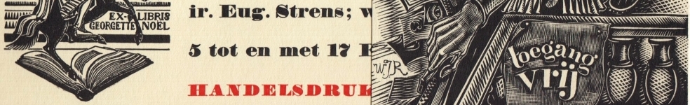 * Op de binnenflap van het omslag een mooi exlibris, in hout gegraveerd door J. FRANKEN Pz., van R.W. Haentjens Dekker en zijn echtgenote M.C. Haentjens Dekker-von Nordheim, een zinrijke verbeelding van beider naam. Vrijwel tegelijk uitgegeven met het vorige boek in deze lijst. Van Laar 22.