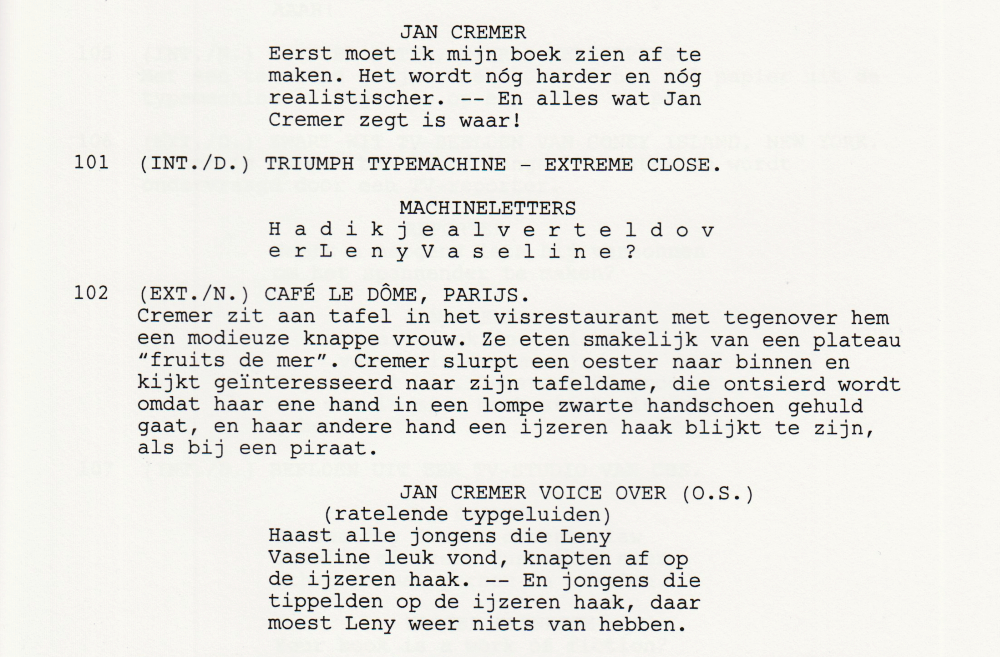 13. (CREMER, Jan). Ruud den DRIJVER Jan Cremer de onverbiddelijke. Screenplay. Amsterdam, Cineventura, 2010. Spiraalband. (1), 77 eenzijdig bedrukte bladen. ‘Zevende, herziene versie’.