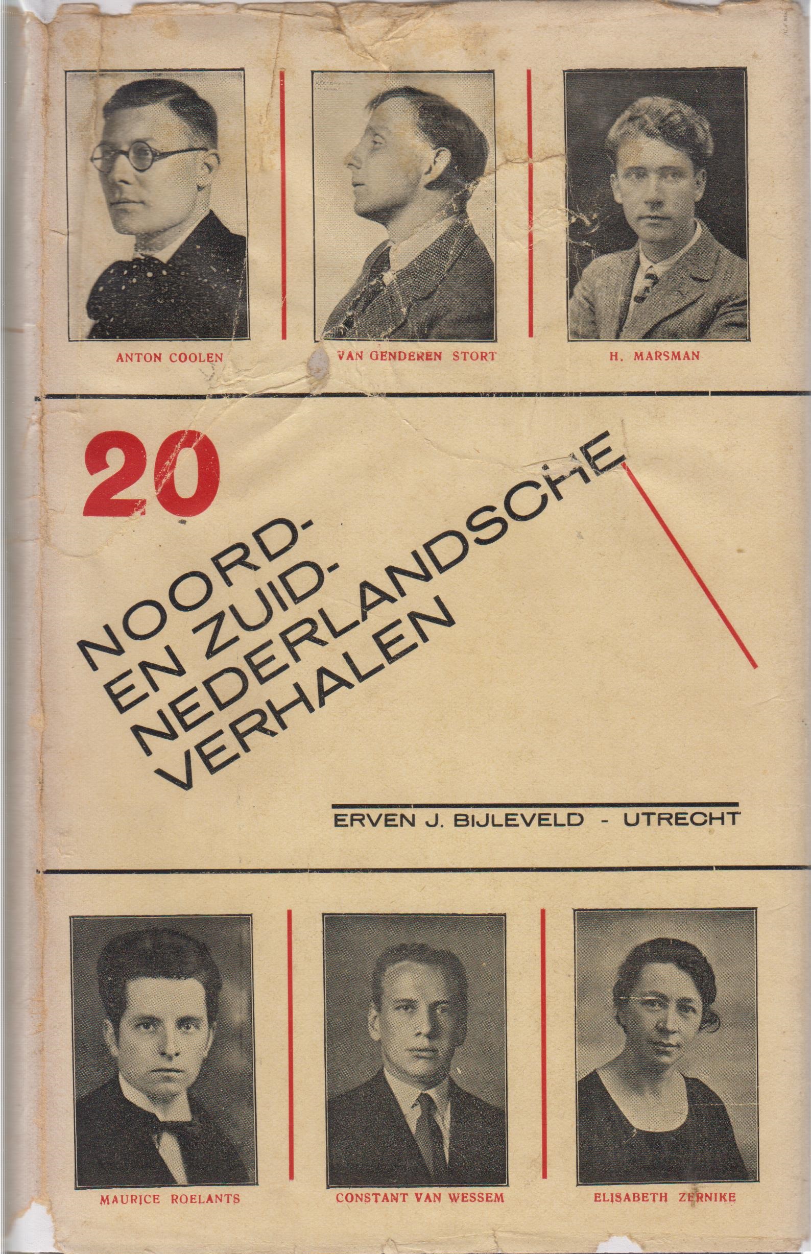 40. SLAUERHOFF e.a., J. Twintig Noord- en Zuid-Nederlandsche verhalen. Samengesteld en ingeleid door Constant van Wessem. Utrecht, J. Bijleveld, 1930. Linnen met stofomslag. 316 p. Verhalen van o.m. Antoon Coolen, Den Doolaard, Jan Engelman, Aart van der Leeuw, Marsman, Mau Marssen, Du Perron, Maurice Roelants, Slauerhoff, Theun de Vries, Beb Vuyk, Gerard Walschap, Van Wessem zelf, Gerard Wijdeveld en Elisabeth Zernike. 1e druk. Omslag gekreukt en beschadigd, rooddruk op de rug verbleekt.