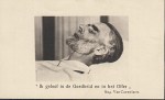 12. CAUWELAERT, August Van Doodsprentje. Originele foto van de dichter op zijn doodsbed. Daaronder een dichtregel. Op de achterkant bedrukt met zijn uitgebreid overlijdensbericht en twee fragmenten uit gedichten. 65 x 108 mm. In goede conditie.