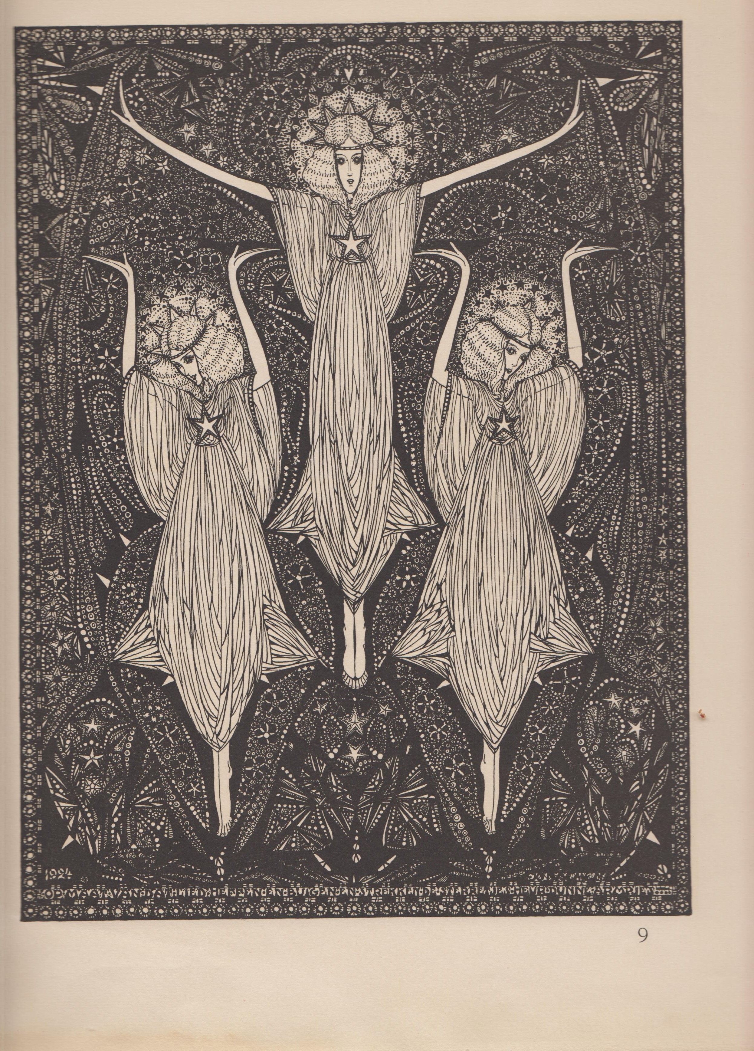 * Een zeer decoratief kunstenaarsboek, in een hiëratische art-decostijl geheel geïllustreerd door de schrijfster (1891-1944), die tevens boekbandontwerpster en glaskunstenaar was. Romantiserend over de jonggestorven Hongaarse violist Stefan Partos (1903-1920). Met een voorwoord van de in Nederland woonachtige psycholoog Géza Révész. Dit is een van de eerste 350 exemplaren voor de intekenaars: nr. 55 van de oplaag. Schaars met stofomslag, al is dat helaas beschadigd. Cat. Brusse 592. (De afbeelding hiernaast is sterk vergrootbaar!)