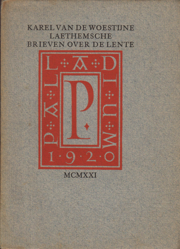 32. WOESTIJNE, Karel van de Laethemsche Brieven over de Lente aan Adolf Herckenrath. (Arnhem, Hijman, Stenfert Kroese & Van der Zande), 1921. Ingenaaid. Gedrukt onder typografische leiding van J. van Krimpen in rood en zwart in een oplage van 200 exemplaren. 1e druk. Rug verbruind, exlibris van L.M. Schwarz op eerste blad, verder goed.