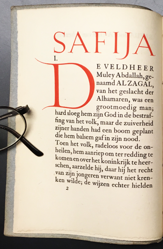 * Typografisch verzorgd door J. van Krimpen, die ook verantwoordelijk was voor de expressieve initialen. Palladium 25.