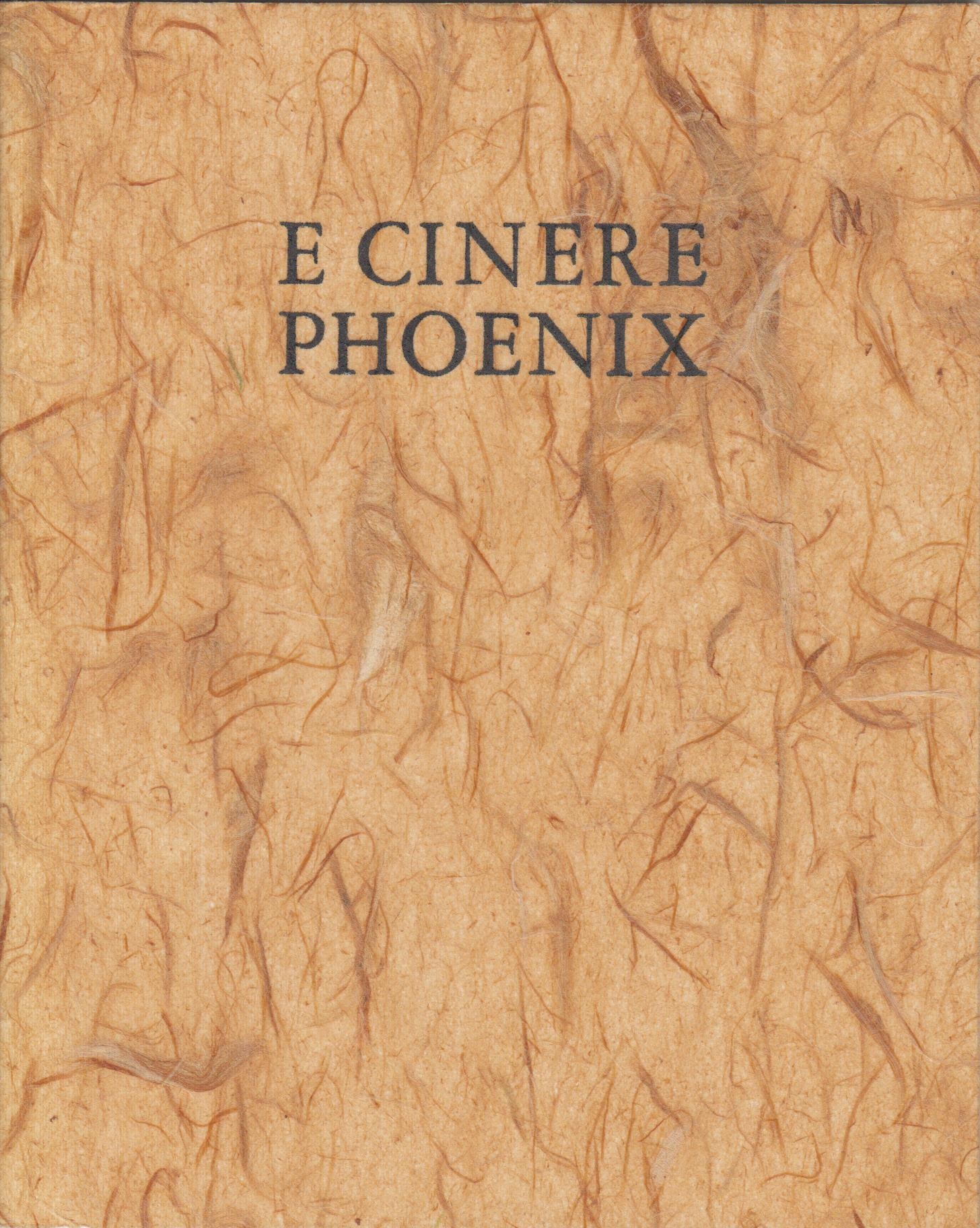 17. NIJLEN, Jan van E Cinere Phoenix. (Met een Engelse vertaling door H.G. LIEBENTRAU). Amsterdam, (Binderij Phoenix/Phoenix Editions), 1985. Ingenaaid met stofomslag. 12 p. Met frontispice. Gedrukt op de Veerpers [= Rob Cox] in zwart, rood en kerrie in een oplage van 125 genummerde exemplaren.