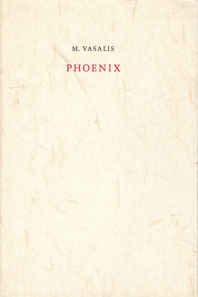 32. VASALIS, M. Phoenix. (Met een tekening door Siegfried Woldhek). Amsterdam, (Binderij Phoenix/ Phoenix Editions) 1983. Ingenaaid met stofomslag. (12) p. Met de hand gezet uit de Lectura door Hans van Eijk (= In de Bonnefant) in rood en zwart in een oplage van 125 genummerde exemplaren.