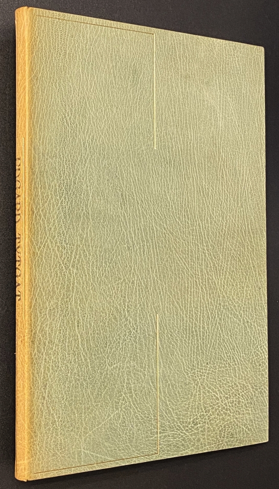 15. MANN, Thomas Tristan. Eine Novelle. Amsterdam, Phoenix Editions, 1983. 25 x 16 cm. Halfperkament, de platten bedekt met grove Thaise zijde. 66 p. Geheel in het Duits. Gezet bij Joh. Enschede & Zonen in Haarlem met de Trinité roman wide 3, ontworpen door Bram de Does. Redactie G.A. von Winter. Typografie Karina Meister. Als frontispice dient een bladzijde uit de originele partituur van Tristan und Isolde. Gedrukt in 125 genummerde exemplaren. Met prospectus, zonder schuifhoes. Zeer mooi exemplaar.