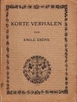 19. ERENS, Emile Korte verhalen. (Met handgeschreven opdracht van de schrijver). Amsterdam, Van Looy, 1906. Ingenaaid (mooi ontwerp van Theo Nieuwenhuis). 148 p. 1e druk. Boven- en onderzijde rug beschadigd, hapje uit achterflap. Losjes in omslag.