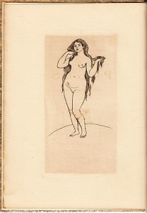 * Dit is een van 225 exemplaren op Hollands papier. Een prachtige originele ets van Renoir: een vrouw met ampele vormen en lange, loshangende haren, met een lichte glimlach in gedachten verzonken. Twintig prozateksten van Mallarmé: