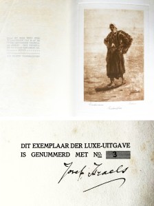 = Dit is een van de 50 genummerde en door de kunstenaar gesigneerde luxe-exemplaren, gebonden in goudgestempeld perkament met op het voorplat een afbeelding van de hierboven beschreven tekening van Israëls. Dit is nummer 3 van de oplage, het exemplaar van de uitgever.