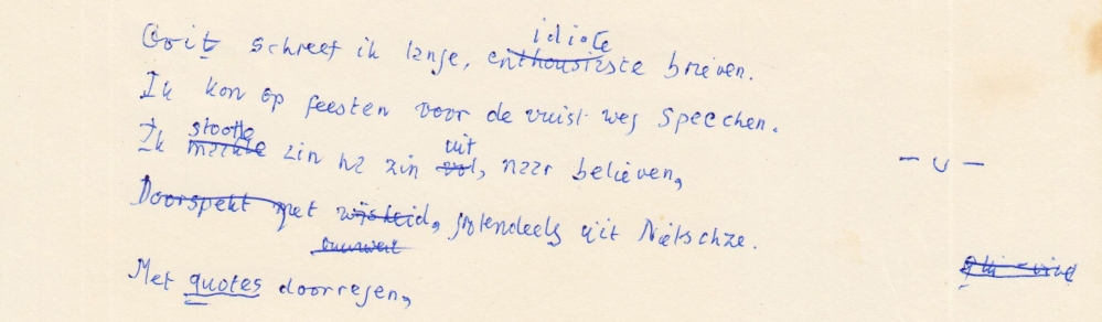 Kleine oplagen? Badkamer, Fax aan Agaath, In liefde bloeyende, Ik ben een bijl, Pseudo-Ambrosia. dat laatste boek – natuurlijk – in twee varianten, een met en een zonder ets. Handgeschreven gedichten met originele kunst van Hans Broekhuijsen en Herman Gordijn. Correspondentie over boekproductie met antiquaar Willem Huijer, drukker Ger Kleis en uitgever Theo Sontrop. Drukproeven, manuscripten. Samengevat: alles in bijna alle drukken. En meer. Geschikt voor uw museum, uw school, uw bibliotheek, uw stadhuis, uw Wunderkammer, uw kasteel.
