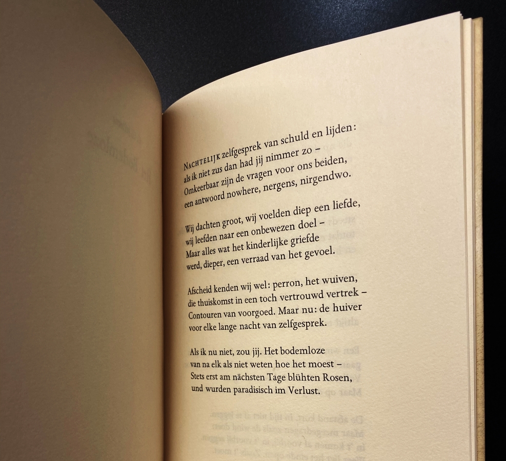 2. Met gesigneerde opdracht van de dichter: ‘ 7 sept, o nee okt. 2009/ Voor Ludwig!/ Hoe tijdloos/ kun je zijn./ Met alle/ waardering en/ genoegen/ Rense’. Bijgevoegd: compactdisc met dezelfde titel, waarop 16 gedichten uit bundel, op muziek gezet en gespeeld door Nina Swart.