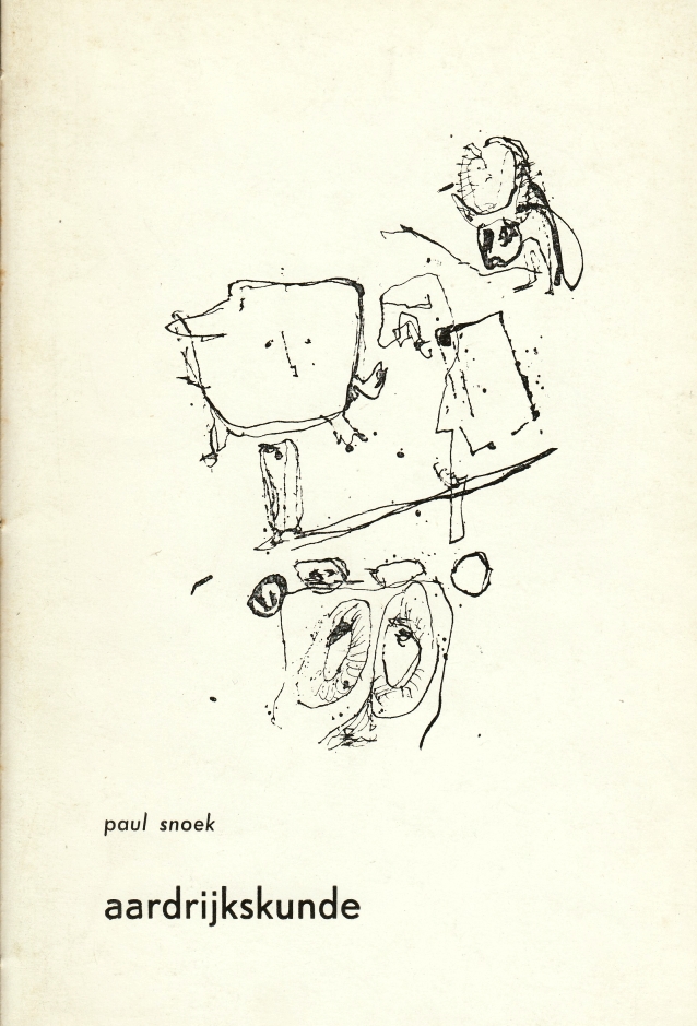 25. SNOEK, Paul Aardrijkskunde. Antropografische suite voor naïeve meisjes. (Met tekeningen op omslag en frontispice door Asger Jorn). Antwerpen, (vzwd Gard-Sivik), 1956. Cahiersteek. (24) p. Gedrukt in een oplage van 300 exemplaren. 1e druk.
