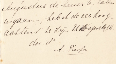 * De (in het algemeen uitstekend leesbare) brieven zijn vaak hartelijk en persoonlijk van toon, en betreffen familie- en huisaangelegenheden, af en toe ook geldzaken. Ook met een brief uit 1895 van Allard Pierson (geschreven door zijn vrouw? maar met zijn handtekening) over het huren van huize Velhorst voor een bedrag van 550 gulden per jaar. Pierson zou nog geen jaar later in de Velhorst overlijden.