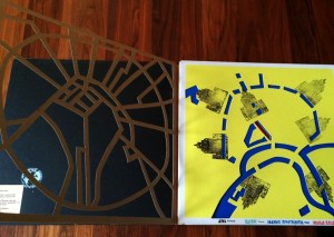 11. GREVINK, Gea Moskwy plan goroda. (Plattegrond van Moskou-kunstenaarsboek). Arnhem, Stichting Plaatsmaken, 1990. 41 x 41 cm. Uitklapbare plattegrond met uitgestanste patronen. In kleuren. 1e druk. Reusachtig grote, zeer bewerkelijke uitgave in goede staat. Stempel in wit van de kunstenares (wereldbol met ‘Gea’ erin).